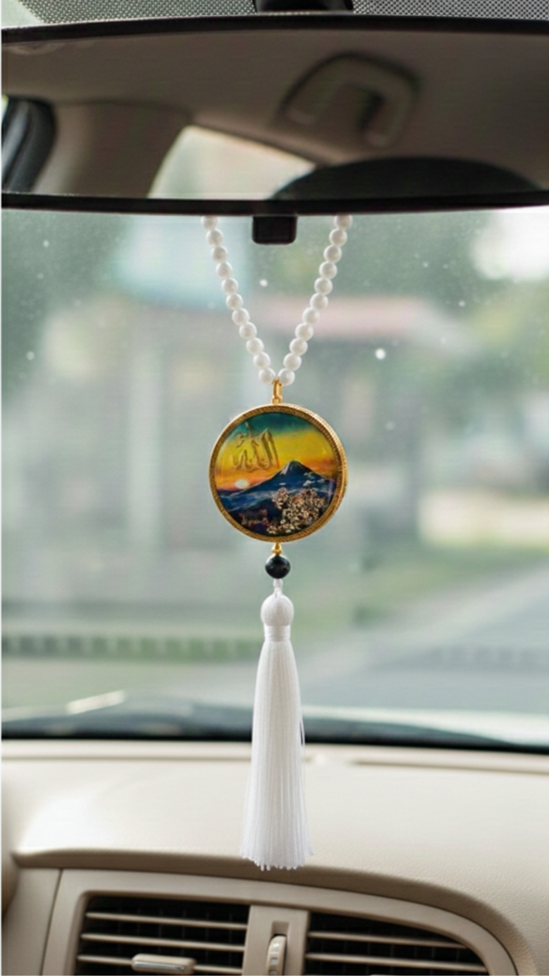 MA-G03DF là phụ kiện treo gương xe hơi được khắc tên Allah và Muhammad, viền vàng thể hiện sức mạnh điềm tĩnh và đức tin vượt thời gian.